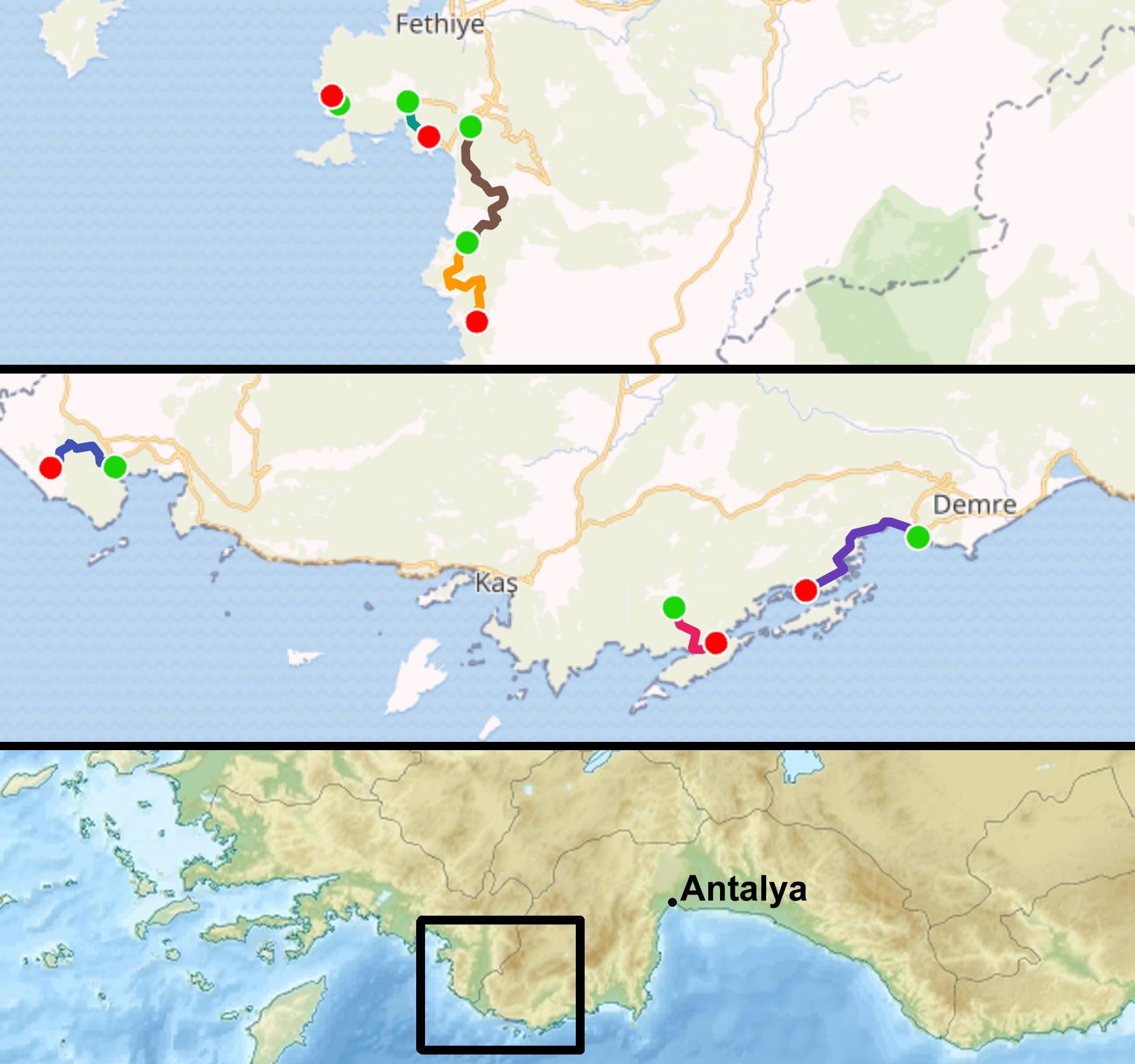 Lykien ist der historische Name der Teke-Halbinsel, die an der Südküste der Türkei ins Mittelmeer ragt. Die Berge erheben sich steil von der felsigen Küste und bieten schöne Ausblicke und abwechslungsreiche Wanderungen. Hier mischen sich Kiefern mit Erdbeerbäumen und Johannisbrotbäumen und weichen in höheren Lagen Wacholder und Zedern. Neben dem Küstentourismus drängt sich die hochintensive Landwirtschaft in die Deltas. Bei den Wanderungen trifft man zahlreiche lykische Gräber und Ruinen aus der lykischen, römischen und byzantinischen Periode an, die die faszinierende Landschaft von den Bergen und dem Meer noch mehr verschönern.